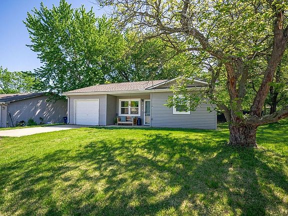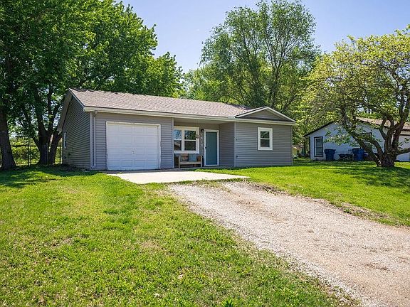Come view this charming home that consists of 3 bedrooms and 1 bath with a large fenced yard and patio. One car garage that is currently converted into non-conforming 4th BR/homeschool room/office/workout area/storage or whatever you would like to use it for and a small shop space in the front of the garage. Could easily be converted back to full garage if you so desire. Living room has a wonderful focal wall with shiplap. Eat in kitchen with ample cabinets to keep organized. New barn doors in hall and an adorable fairy door that adds a bit of whimsy and delight! Roof is 1 1/2 year old. Newer siding. Home is located for easy commute to Lawrence or the KC area.