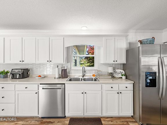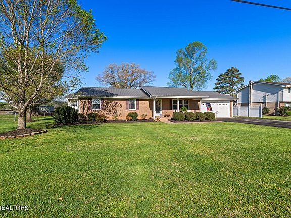 This impeccably maintained ranch-style home is situated in Etowah, within the well-established Seven Cedars subdivision. It features three bedrooms and two full bathrooms, all of which have been carefully looked after. The property boasts a level city lot that offers a picturesque view of the neighboring cow pasture from the backyard, and Starr Mountain from the front. Upon entering, you are welcomed into one of the two spacious living rooms. An open concept kitchen leads you to the second living room. New LVT flooring has been laid throughout the common areas and both guest rooms. The full guest bathroom is conveniently located in the hallway. The primary suite is expansive, featuring a bathroom equipped with a jetted garden tub and a walk-in shower. Outside, you can spend time on the front porch or the back deck, both offering splendid views of the meticulously maintained landscaping and the stunning Japanese Maple tree in the backyard. Ample storage is provided by the attic space, a detached carport, and a storage building. Your potential new home is just a phone call away! Buyers are advised to verify all information.