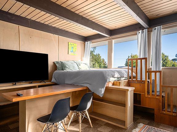 Fully Furnished Rental! Welcome to the Retro Cabin - a huge private guest suite with woodsy charm. Wake up in the cozy loft bed surrounded by natural light and a view of the bay. Kick back at the bar or cook in the brand new full kitchen that boasts a range, oven, refrigerator, microwave, toaster oven and coffee maker. Digital nomads can work from home with blazing fiber optic WiFi with symmetric speeds up to 1 Gig and two dedicated workspaces. Amenities galore including air conditioning, wood burning fireplace, 5-burner BBQ grill, private patio and yard, and 65" HD TV. Free laundry washer and dryer in the laundry room downstairs. All utilities paid. Easy access to freeways, BART, Bay Bridge, Richmond San Rafael Bridge, Carquinez Bridge, and shopping and dining areas like El Cerrito Plaza and Solano Avenue. Nearby hospitals like Alta Bates, Kaiser Richmond, Kaiser Oakland, Children's Hospital Oakland and UCSF Benioff. Nearby universities like UC Berkeley and Berkeley City College. Fully furnished! Lease term 3-12 months available and negotiable All utilities paid - internet, water, garbage, electricity, gas Free laundry machines on premises Street parking only Blazing fast fiber optic WiFi with symmetric speeds up to 1 Gigabit Pets negotiable with pet deposit of $1,000 Security deposit range $1,500-$3,000 depending on lease duration Recent updates - brand new kitchen, new lighting One-time cleaning fee $170