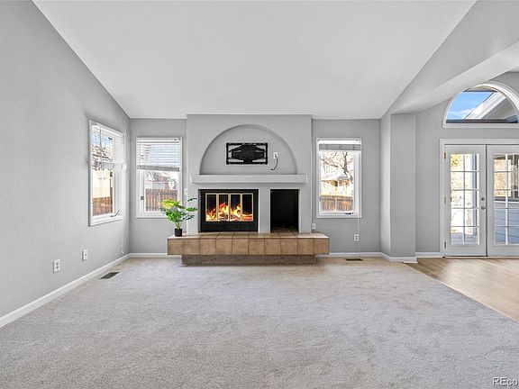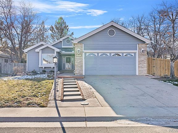 Open ranch style home on a large corner lot in a cul-de-sac. Located in desirable Hunters Glen. Walking in, you will feel the clean, bright, and open concept. New carpet and plank flooring! Vaulted ceilings and a gas fireplace highlight the living room. It flows naturally into the dining area and kitchen, equipped with a pantry, tons of cabinet space, and a gas stove. Main level is the primary suite with private bathroom and a large spacious closet. The custom walk-in shower has two rain heads and a seat. The main level also includes a second bedroom, bathroom, and an office. Take the steps down to a partially finished basement, and you will find two more rooms that could be used as bedrooms. There you will also find a bathroom, a vast and open bonus/family room, and your laundry/utility room. Back upstairs from the dining room, step through the french doors to the expansive, tiered Trex deck and into the backyard. An outdoor retreat with its own patio/deck and beautiful mature trees. Two-car attached garage, 2 storage sheds and a sprinkler system. New roof and gutters! Take a stroll through the tree-lined streets of this serene neighborhood to the tennis courts, basketball courts, the huge Hunters Glen Lake, walking trails, community park, pool & clubhouse. Enjoy year-round recreation and activities for all! So many amenities nearby -- Orchard Town Center Shops, Denver's Premier Outlet Stores, Thorncreek Golf Course, and Adams District 12 Schools. Easy access to I-25, downtown Denver, I-76, E470, and DIA! Just 1.2 miles from the new RTD N-Line.