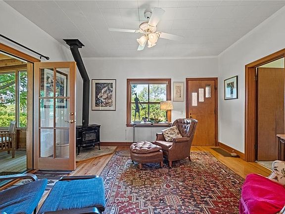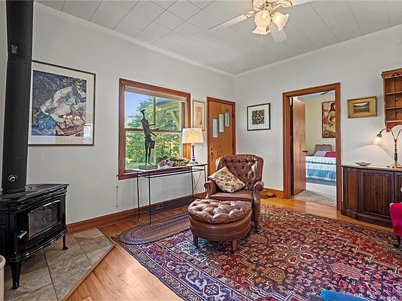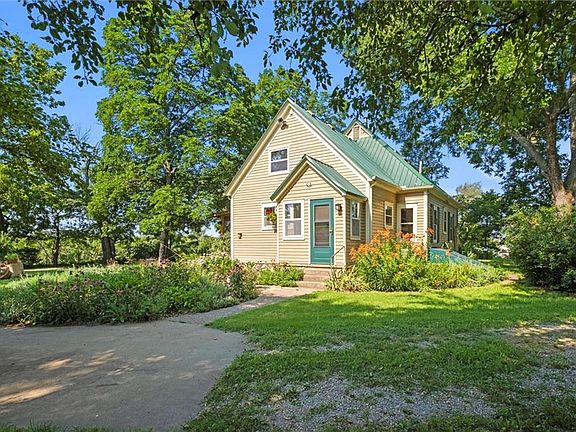 Located 15 minutes from downtown Lawrence, this charming 1900 farmhouse is ready for its new owners! Sitting on nearly 5 acres, it's a great escape from city life. Next to the house is a sprawling 40-tree orchard, featuring a variety of fruit-bearing trees including apples and pears. The expansive grounds of the property provide ample space for exploration and relaxation. A mix of open lawns and shaded groves create inviting spaces for outdoor activities. Inside, the house retains its historic character with features such as high ceilings and original hardwood floors. The home also has a large screened-in porch, perfect for entertaining guests! Large windows allow natural light to flood the rooms, offering views of the surrounding greenery and orchard. The detached garage features two garage bays AND a finished space that has endless possibilities. Plenty of other storage with additional outbuildings on the property. Schedule a showing today!