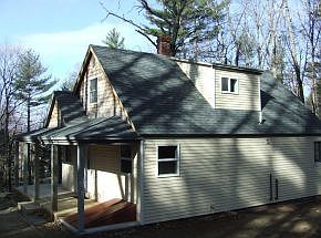 COMPLETELY AND PROFESSIONALLY REMODELED CONTEMPORARY CAPE with so much to offer! This three plus bedroom home has hardwood floors on the first floor and new carpet on the second, tastefully painted sheetrock, beadboard and wainscotted walls, two new bathrooms with new flooring, new kitchen with oak cabinetry and stainless steel appliances, appealing electrical fixtures and lots of windows for great light and ventilation. The exterior is new (low maintenance vinyl clapboards, soft yellow in color), and there is a new green architecturally shingled roof. Great floor plan with open kitchen/dining room, open oak stairwell to second floor and brick chimney and hearth in the sunroom entrance area. Den could be first floor bedroom. Property includes full basement, back shed and filtered view easterly to mountains.