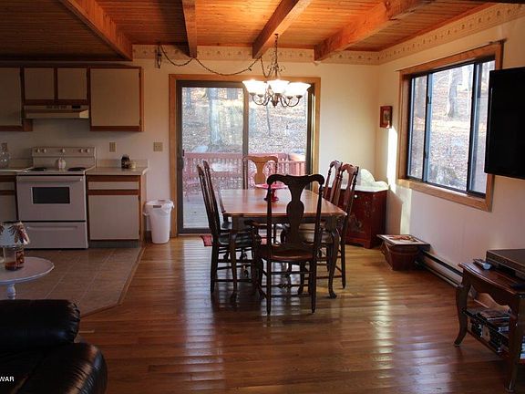 Lake Wallenpaupack lake rights Chalet. Cul-de-sac location w/ private back deck for entertaining. Recent updates include new roof, new siding and wood floors. Just come to the BIG LAKE and have fun! There are 3 bedrooms, a loft, 2 full baths and a cozy fireplace.
