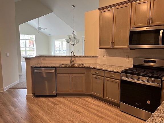 Step inside and feel the sunshine in this meticulously designed villa. Cathedral ceilings throughout compliment the open floor plan. Every inch of this home has been thoughtfully planned including ZERO stairs from the front to the back. LVP, stainless steel appliances, Lennox furnace and A/C, Pella windows and pull out drawers on all the lower cabinets. Third bedroom could also be a den.