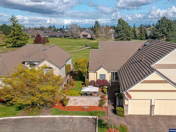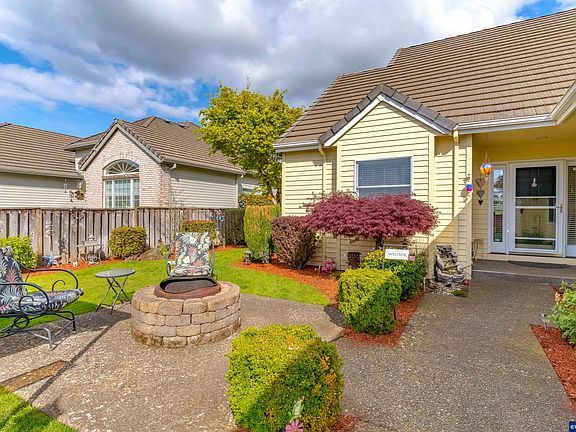 Enjoy resort like living in beautiful Tukwila, Woodburn's prestigious community. Gorgeous golf course views out your back door, community pool across the street, Tennis courts, pickleball & club house near by. Vaulted open floor plan boasts lots of natural light in this stunning 2 bed 2 bath w/den home. Recent updates incl quartz countertops, hardwoods in dining rm, SS app w/double oven, 2” blinds, storm doors, outside paint, new Lennox HVAC, RV outlet, Generator plug for power outages, 5 person Hot tub.