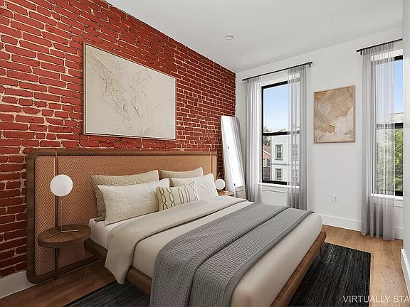 Welcome to this newly gut-renovated three-bedroom, two-bath apartment featuring outdoor space and modern finishes. Situated on a serene tree-lined street in the vibrant Bushwick neighborhood, 1012 Halsey offers a perfect blend of comfort and style. The unit showcases exposed brick walls, recessed lighting, and hardwood floors, adding a touch of charm to every corner. The kitchen is a chef's delight, equipped with new stainless steel appliances, marble-style countertops, and neutral beige cabinets. The spacious bedrooms can accommodate a queen-size bed and additional furniture, with access to the backyard for added convenience. The contemporary bathroom features upscale finishes, a vanity mirror, and cabinet for storage. Pet-friendly, with approval on a case-by-case basis. Request a tour today to discover more about this stunning property and schedule a showing!! Please text Danielle for quicker responses!