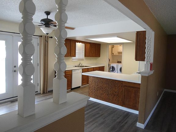 Spacious living occurs in this home which has both a living room and a large rec. room. Home recently updated with new paint, new laminate flooring, new fridge and stove. Also includes washer, dryer, dishwasher, and extra fridge/freezer in the garage. Fenced back yard with deck, storage shed, and portable carport for extra storage. Lots of storage. 8 ceiling fans provide ventilation to aid evaporative cooler. Tenant is responsible for all utilities. No pets and no smoking.