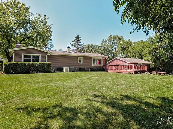 Ranch home featuring finished basement, over sized 2 car garage and .59 acre. Nice living room and step down family room with vaulted ceilings and wood burning fireplace. Large eat-in kitchen with sliders to entertainment sized deck and brick paver patio w/ fire pit. Master suite with ample closet space and updated master bath including heated whirlpool tub. Finished basement includes rec room, updated full bath and the additional 2 bedrooms. Updates include newer roof, water heater, furnace, A/C and roof. Great location close to shopping, Metra and Chain O' Lakes.