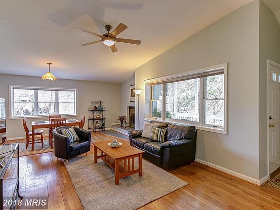 Inviting, immaculate contemporary in lush woodland setting just steps to parks, trail and transit! Bright screened porch; open floor-planned main lvl w/ vaulted ceilings, newly refinished hdwds, FP, and updated kit. and BAs. A true master w/ en suite overlooks the ample back patio & woods. Downstairs, a large rec rm w/ walk-out and additional BRs suitable for study or guest space.Open Sat &Sun!