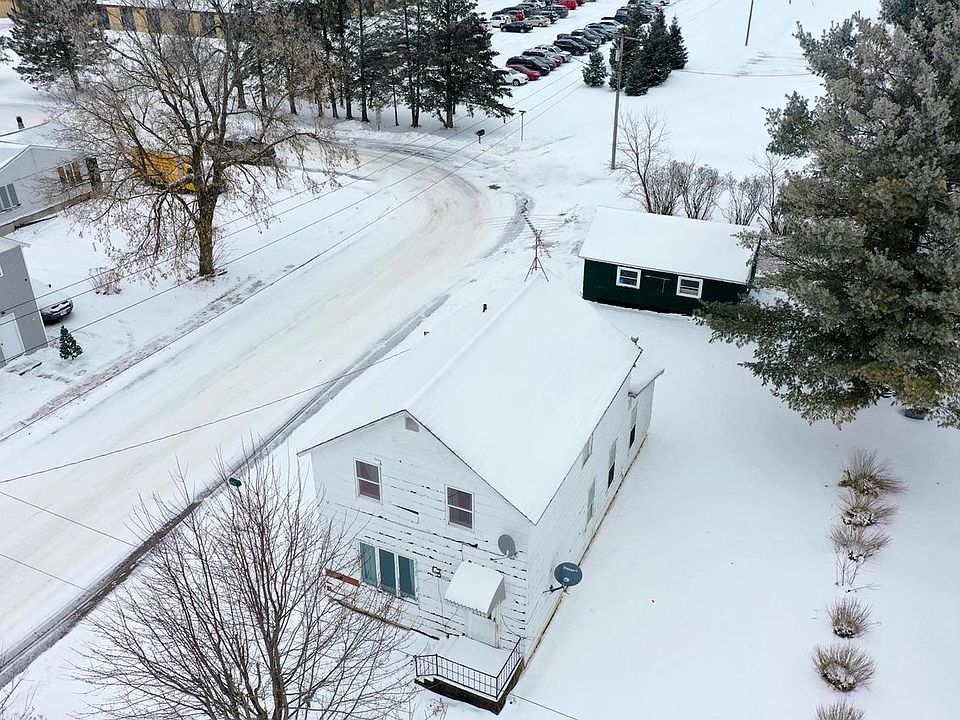 Craftsman 3 bed, 1.5 bath home with corner lot. Kitchen with white cabinetry and vinyl flooring. Heated covered porch. Dining and living room with hardwood flooring. Main floor laundry room. Upper-level half bath with laundry hook ups and space for a walk-in shower. Detached one car garage with blacktop driveway. Located across the road from the Rib Lake School District.,The stove and refrigerator are included in the sale price.