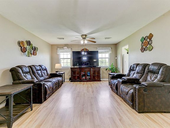 This great home consists 4 bedrooms, 2 baths and a little under 2 acres of land! The open living area and large double entry kitchen makes entertaining easy. The kitchen has a wooden backsplash, lots of great cabinet space and overlooks the side yard. Home has a split bedroom floor plan with a large master and office on one side. The office could be used as a nursery or play room. The master is complete with a walk in closet and en-suite. The secondary bedrooms are sized great for all ages, 2 have walk in closets. The home has laminate, tile and carpet flooring throughout. This great property has plenty of room outdoors for anything your family desires with direct access to 67.