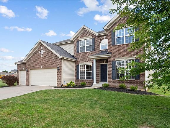 Large 2 story home located in the Far Oaks Golf Community on sought after cul-de-sac features 2900+/- sqft, 4bdrms, 4 baths, 3 car garage on a large lot. Main: upgraded 9' ceilings, 2 story entry foyer w/ hardwood floors. Office & formal dining room. Pass from the dining through the butler pantry to the eat-in kitchen: hardwood floors, butterfly island, abundant counter/ cabinet space, breakfast area w/ sliding door to the large backyard. Kitchen area opens to the family room w/ wall of windows and gas fireplace. Half bath & laundry complete the main. 2nd floor offers: A massive oversized master suite w/ two very large walk in closets, large sitting area & french door entry to the full bath w/ dual sinks, soaking tub and shower, plus private commode closet. 3 well-sized guest beds, full guest bath w/ dual vanities & private shower/toilet closet complete the 2nd level. Unfinished basement features a finished full bath, egress window and dual HVAC units. OFALLON SCHOOLS K-12!