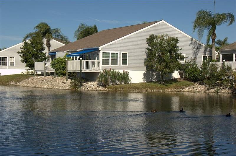 Gorgeous 2 bedroom, 2 bath villa with den and 2 car garage in desirable Perico Bay Club. This home shows pride of ownership! Open split floor plan, vaulted ceilings, new impact windows and blinds. A light and bright kitchen with newer appliances and corian counter tops, white cabinets and breakfast nook. Pull out drawers in lower cabinets for easy access. Enclosed sun room with french doors, which open to the deck which has a retractable awning that overlooks the lake. Sky lights in the den and hallway. Large walk in shower in master bath. Perico Bay is a gated community, very close to Anna Maria Island. New club house with lots of activities, fitness room, tennis, large pool, hot tub, gazebo, and kayak/canoe launch and storage.