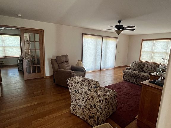 - Features: Kitchen (Island), Flooring (Hardwood), Window Treatments (Blinds)