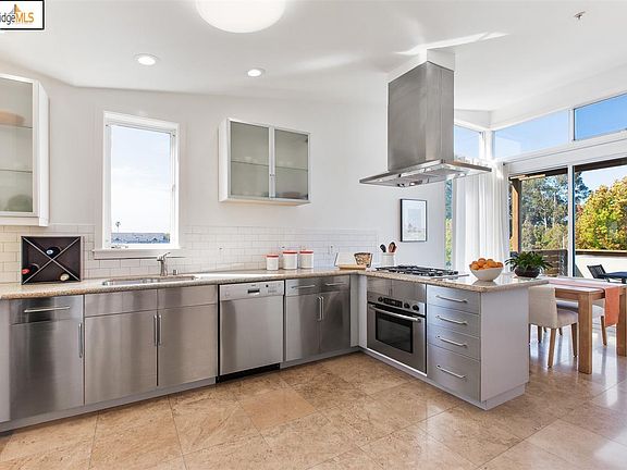 Built in 2005 this Euro style, two storey, contemporary townhome in Albany is a rare find. With dramatic ceilings, an open floor plan, abundant light, and two decks this home is ideal for the entertainer and allows for the best of indoor/outdoor CA living. Both sunny bedroom suites are on the lower level allowing for excellent separation between public and private spaces. The upper level is bright and open with easy flow from the outdoors to the dining area and open plan kitchen. The soaring ceilings and large windows in the living room make for an inviting space. The large den makes working from home easy. The rear deck is large enough to host a dinner party and the front deck has captivating views of the Berkeley Hills. The welcoming entry has a water feature, sumptuous wood paneling and the architecturally interesting stairwell leads to the unit. There is garage parking for two cars and storage. Minutes to Solano Ave, freeways, schools, transbay bus, shops and restaurant.