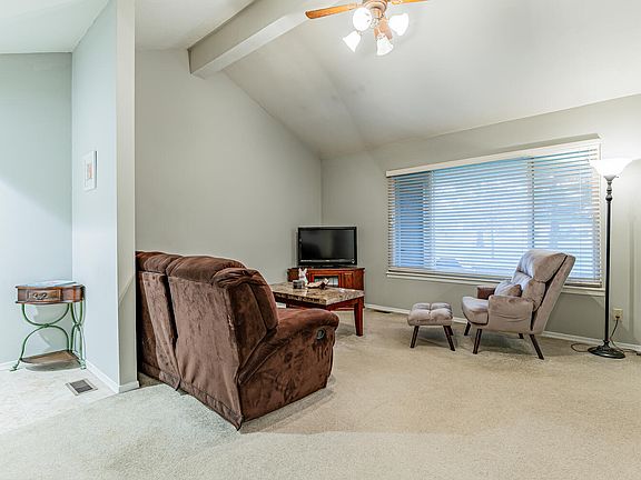 Easy living in this well-maintained, first-floor condo! A spacious living room with vaulted ceilings and a fireplace flows nicely to the dining room and kitchen. Access the covered back patio through the dining room, perfect for outdoor living. Two spacious bedrooms share a full bathroom. Monthly condo fees are $100 per month and include lawn maintenance, snow removal, garbage, and recycling. Also included are two exterior parking spaces. Check out this home today!