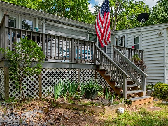 Find your Happy Place in this delightful quality remodeled manufactured home with a site built addition with main lake views and cove protection on beautiful Lake Gaston! You must see to appreciate the warmth, space and views this property offers from nearly every room! Features include charming sunroom, partial standing seam roof, vinyl double pane windows, central vac, kitchen w/upgraded cabinets/tile backsplash; bathrooms with ceramic tile and a private master suite. A basement level two-car garage (new roof in progress!), laundry and flex room are great for lake storage and extra guests! A lakeside storage shed houses all the toys. Most furnishings convey making this an even happier find! Big main lake views in the protection of a cove all in a fabulous location at the heart of the lake action. Yes, Spectrum Internet. See remarks for details on new garage roof & furnishings.