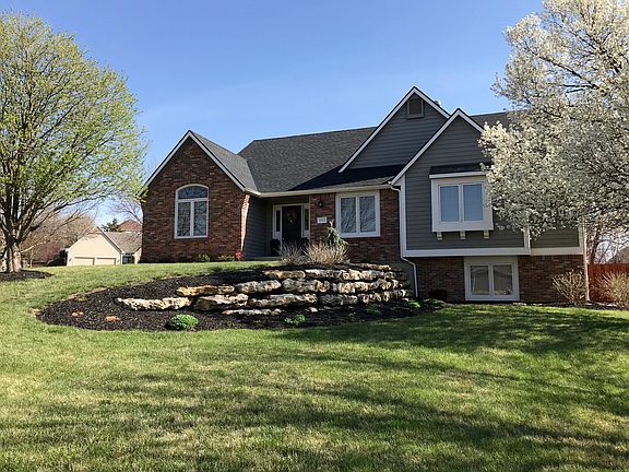 Recently remodeled 5 bedroom 4 bath home located on quiet cul-de-sac.Rare side entry 3 car garage.Features include hardwood floors & silver travertine throughout main level, heated master bath floor, quartz counter-tops, enclosed sun-room with fireplace & wet-bar, stainless steel appliances, plantation shutters, new roof, central vac, laundry off master, and much more. Tons of storage in the 3 car garage and large basement with a massive unfinished area. Seller is a licensed real estate agent in the state of KS.