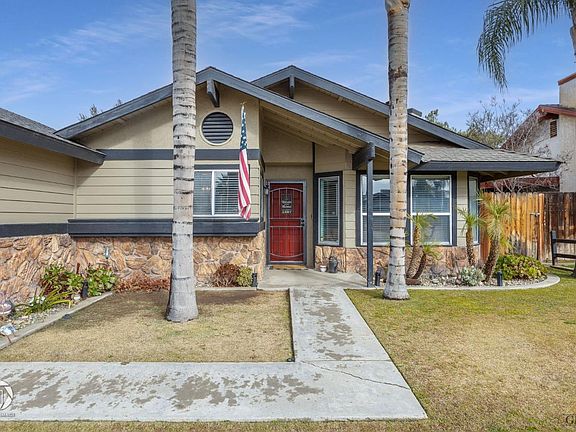 Beautiful home in North Bakersfield! This one is a GEM offering 4 beds + 1.75 baths with approx. 1422 sq. ft. Upon entering there is new luxury vinyl plank flooring throughout most of the home, and a great room with an abundance of natural light featuring a cozy rock fireplace, perfect for those winter days. The kitchen offers ample white cabinetry, stainless appliances, recessed lighting, and a breakfast area with French doors leading to the covered patio. The primary bedroom has tons of storage space, and its ensuite bathroom features an oversized shower. Three additional bedrooms and a full bath, plus linen storage and indoor utility room complete this fantastic floorplan! The backyard offers a covered patio to enjoy the outdoors, as well as your own inground pool, raised flower beds and a storage shed. Call today before this one is gone!