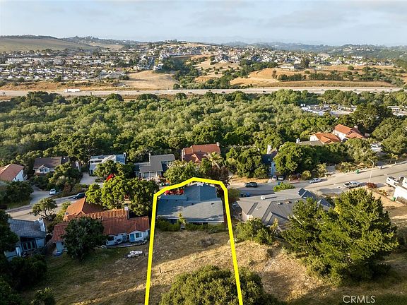Tucked away on a hillside in one of the best locations in Grover Beach, lies the home you’ve been waiting for. It’s truly the perfect blend of setting, thoughtful design, and possibility. The house sits at the foot of a huge 15,400 sqft lot that stretches up the hillside, providing panoramic views of the hills to the north from nearly every room. Beautiful trees, low-maintenance landscaping with new shrubbery, and a synthetic lawn round out the picturesque setting. The thoughtful design starts as soon as you walk in. From the front entry proceed down the stairs to access the two-car garage or head upstairs to the main living area. The open living room with a cathedral ceiling is flooded with light pouring in from multiple windows and two sliding glass doors. The sliders provide excellent views of the hills and city lights and lead to a cozy front porch. A centrally located fireplace with a stair-step mantle is the perfect finishing touch to this main room. Just off the living room is the kitchen with bar seating, a central island, and tons of storage. Toward the back of the home, accessible from both the kitchen and the living room, is another family room and/or dining room, depending on your preference. A slider off the back of this room leads to the rear patio with synthetic grass and steps leading to the top half of the property. Yet another great design element is that each of the three bedrooms has access to a bathroom. The large primary bedroom has a walk-in closet and overlooks the front yard with views of the hills. The second bedroom has a slider with access to the back patio and the third bedroom has an en-suite bath with access to a side deck that leads to the rear patio. Recent upgrades include a new roof, new rain gutters, a new water heater, new interior paint, and new carpet. This property offers more than just a great layout, it offers the possibility to put your mark on it too. The back half of the property is a blank canvas, perfect for a garden, orchard, gazebo, fire pit, ADU, she-shed, you name it. Whatever you do, you’ll have amazing views!