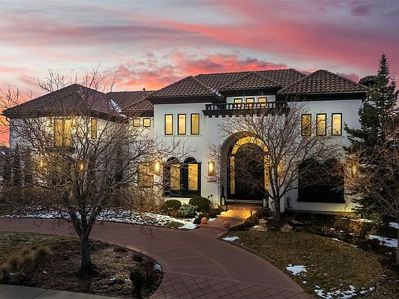 Modern design meets warm, inviting elegance in this absolutely stunning, fully custom 8,500-square-foot estate, ideally situated on one of the most premier lots in all of Highlands Ranch. Backing to permanent open space, the home offers breathtaking panoramic mountain views from every level, providing exceptional privacy and serenity. Located in the prestigious, gated Highwoods neighborhood, this residence features five bedrooms on the upper level, each with a private en-suite bath and walk-in closet. The luxurious primary suite includes a private balcony, while a spacious open loft offers flexible additional living space. The gourmet kitchen is a true centerpiece, showcasing handcrafted cabinetry, slab quartz countertops, marble backsplash, farmhouse sink, oversized island, butler’s pantry, and an expansive walk-in pantry—complete with top-of-the-line Viking and Sub-Zero appliances. A grand two-story family room with striking herringbone accents anchors the main level, complemented by five fireplaces throughout the home. A large main-floor office captures stunning views, creating an inspiring work-from-home environment. Designed with entertaining in mind, the home offers multiple indoor and outdoor living spaces, including terraces on every level and dual staircases for seamless flow. The updated, finished walk-out basement includes a private guest, nanny, or multi-generational suite with a discreet full kitchen tucked behind a wet bar, a large recreation area, game or theater room, exercise room+ steam shower, and a secure safe room. Completing this exceptional property is a newer saltwater pool with integrated hot tub and sun shelf, professional landscaping, and an invisible fence. Recent upgrades include a whole-home water filtration system, two new water heaters, three new furnaces, and two new air-conditioning units. The four-car garage features new garage doors and epoxy flooring. ***A virtual tour is available for additional photos and details.