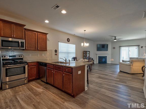 Welcome home to this beautiful and almost new property featuring: 1 level ranch living, cul de sac lot, large .32 acre lot, brick front, backs to HOA land and pond, open concept with awesome kitchen bar overlooking dining area and family room. Neighborhood pool under construction. Easy access to Zebulon, Knightdale, Wendell, Raleigh & 87/264/64. Large closets and pantry. Separate garden tub and walk-in shower in master bath. Master bed with vaulted ceiling. Enjoy coffee on your patio overlooking the pond.