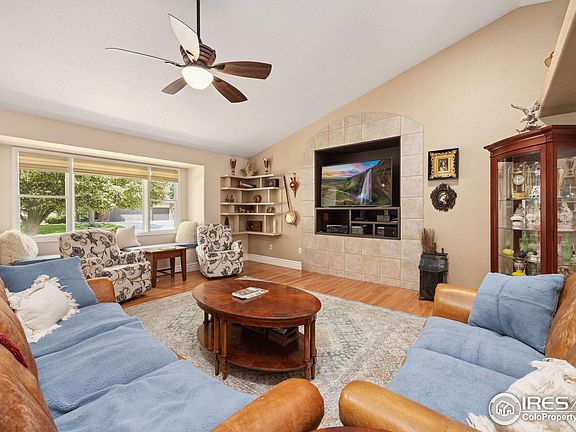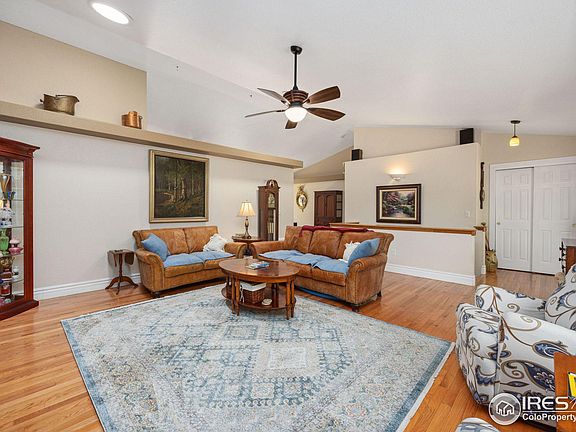 Lovingly cared for 5 bedroom, 3 bathroom, ranch style home on .31 acres, near the heart of Johnstown, with no HOA or metro district. Many upgrades to enjoy including custom Pella windows, granite countertops and upgraded tile throughout. The main floor has tons of natural light, multiple sun tubes, hardwood floors and vaulted ceilings. The spacious kitchen with stainless steel appliances and double ovens offers ample storage and plenty of counter space. The primary suite includes vaulted ceilings, a walk-in closet, window seat and upgraded shower. On the main level, you will also find 2 additional bedrooms, a full bath and large laundry room. The fully finished basement features a home theater, wet bar, game area, 2 additional bedrooms and luxurious bath. The beautifully landscaped backyard is your private oasis with raised deck, pergola, fire pit, vegetable garden with a separate lovely flower garden area, water feature and a 12 x 12 outbuilding. You will have plenty of room for all your toys in the oversized 2 car garage (697 sq. ft.), RV/boat parking on side of the house and backyard storage shed. Furnace, AC and Roof replaced in 2017.
