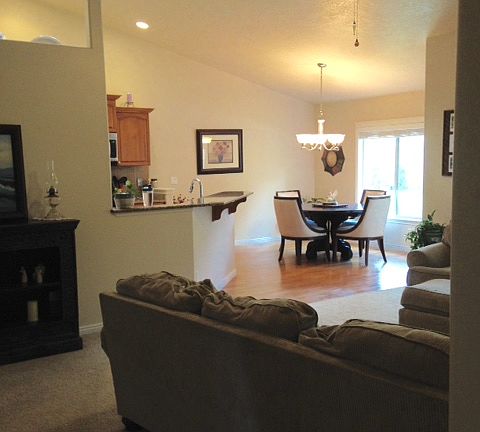 Wow factor custom built home! Spacious corner fenced lot, wide entry gallery leads to open living dining kitchen area featuring lovely gas fireplace and gorgeous granite breakfast bar and countertops. Plant shelves all along the kitchen and part of the entry area. Two full baths with soaker tub. Outside is a patio area and large private backyard. Large gates for easy access to back yard.