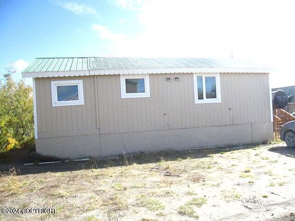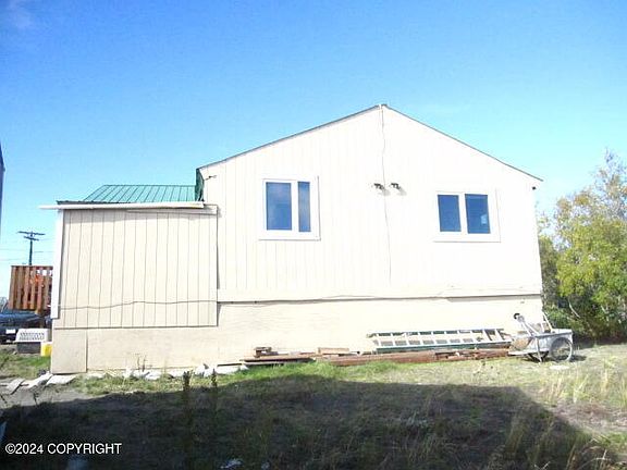 Property situated on a corner lot, large back yard facing the tundra. Main building is 4 bdrm, 2 bath, separate exit from bdrm on the back side of the house. Additional detached bldg with 1 bdrm, 1 bath; 600 sq.ft shop in the back yard, space to park 4 vehicles, recent appraisal value of $465k. Owner financing option with $100k down. Toyo stoves + baseboard heat. Furniture can stay