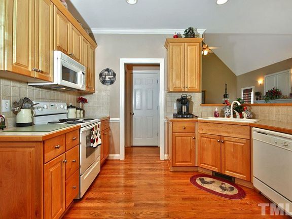 GREAT LISTING IN POPULAR RAND MEADOWS SUBDIVISION. 3 BEDROOMS PLUS A BONUS ROOM. ALL APPLIANCES CONVEY. HARDWOODS IN FOYER, DINING ROOM, KITCHEN, AND BREAKFAST NOOK. CEILING FANS IN ALL BEDROOMS, BONUS ROOM AND FAMILY ROOM. WATER SOFTNER IN GARAGE CONVEYS. TREY CEILINGS IN 1ST FLOOR MASTER AND DINING ROOM. GARAGE HAS BEEN USED AS A TV ROOM, BUT CAN EASILY CONVERT BACK TO A GARAGE. LARGE LOT, LOW HOA FEES AND LOW WAKE COUNTY TAXES ROUND THIS MUST SEE HOME.