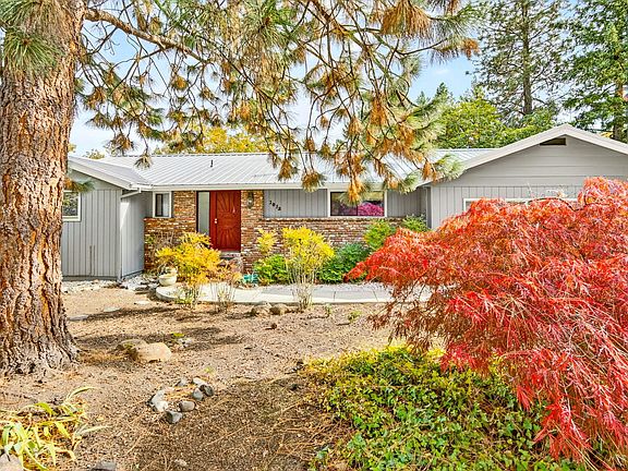 Spacious and full of character, this home offers beautiful views and comfortable main-level living. The 4 bed, 4 bath design blends late mid-century architecture with modern updates. The kitchen features maple cabinets, granite counters, stainless appliances, and a built-in dining nook. Wood floors, open beams, and large windows create warmth and natural light throughout. Bathrooms are tastefully updated with tile, newer vanities, and stone counters. The upper level includes the en suite primary bedroom plus one additional bedroom and bath, while the lower level offers two bedrooms, a common space with a gas fireplace, and two bonus rooms for a home gym or storage. Enjoy outdoor living on the expansive composite deck overlooking the hills, or explore nearby walking trails. With a metal roof, large lot, and flexible layout, this home is ideal for multigenerational living or a potential ADU (buyer to verify). A perfect blend of comfort, charm, and opportunity.