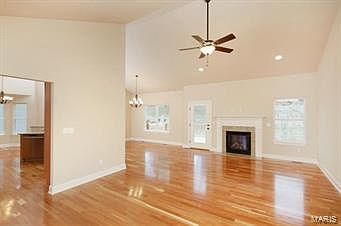 Jeff Therrien, home builder, has honed his skills w/ one of St. Louis's top Custom Home Builders. He brings that expertise to St. Charles with his latest custom home. This 1872 square foot traditional three bedroom, two bath with a three car garage is situated on a quarter acre homesite. The low maintenance exterior features a brick/stone front elevation, vinyl siding, rear cedar deck, enclosed soffits & fascia and asphalt architectural shingles.The entry foyer features a glass paneled front door w/ sidelights, an arched opening w/wood columns transitions you into the grt rm. Hrdwd Flooring extends from the grt rm through a majority of the 1st flr. Ovrszd base mldng & dr csing, marble fp surround w/ elegant wood mantle, glazed 42" wall cabinets with raised panels, stainless steel appliances, nine foot ceilings, coffered ceiling at master bedroom, vaulted ceiling at kitchen, breakfast, dining & great room, whirlpool tub at master, marble flrng at baths, all adds to elegance of home.