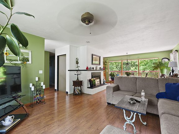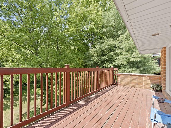 Wonderful brick ranch style home in Sunrise Circle area, with abundant natural light and a private backyard that is bordered by woods. This home features big floor to ceiling windows that bring the outside in, framing a view of many mature trees and nature in a wooded setting. There is a deck off the kitchen and a screen porch off the lower level. The living room is open to the dining area and has a gas fireplace. The kitchen has unique built-in display cabinets and a movable island that will stay with the house. The bathroom was remodeled in the last 2 years. The lower level is walk-out, with a 3rd bedroom that has a wood burning fireplace, this could also be used as a family room. There is a bonus room and a 3/4 bath in the lower level. Full appliance package, including washer and dryer.