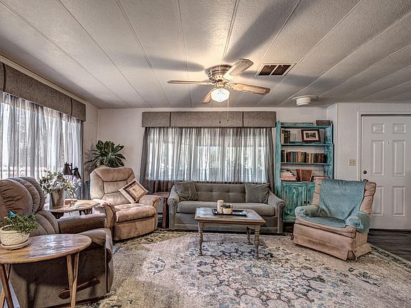 Your light and bright country chic home awaits! Located in established Pine Ridge Manor this 24' x 48' Catalina manufactured home with an amazing sun porch is ready for move in! Bring your potted plants and pets! 2 Bedroom 2 bath, 1152 square feet, with room for a garden in the back. Included appliances are refrigerator, gas stove, microwave, stacked washer dryer. There is a spacious pantry. Workshop/She-Shed in the back for all your projects.