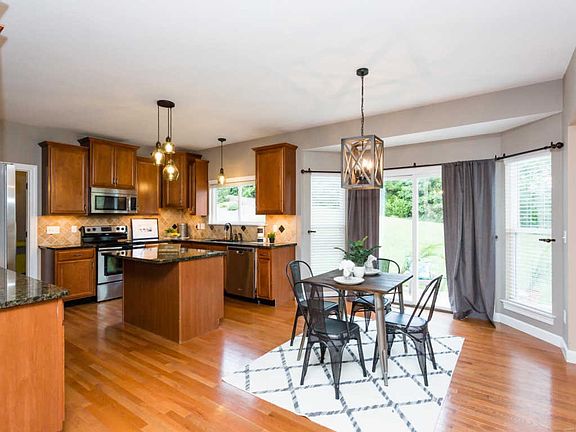 This stunning custom built 2 story home has so many wonderful additions you will want to see! From the moment you pull up, you will see the gorgeous front elevation complete with brick/stone and shaker siding above the oversized 3 car garage. The first floor master piece includes special touches in every room. From the tray ceiling in the formal dining room, bamboo flooring in the den, the huge great room equipped with stone fireplace, 9 foot ceilings, arched openings and finally the gorgeous split staircase, no detail was left out. The huge custom kitchen with 42' cherry stained maple cabinetry with crown molding, beautiful back splash, granite countertops and center island is waiting for its chef. Upstairs includes 4 generous sized bedrooms, 3 full baths (one Jack & Jill), and a loft. The 9 ft. poured basement is already rouged in and an open slate ready for your creativity. All of this plus a subdivision pool, clubhouse and lake.