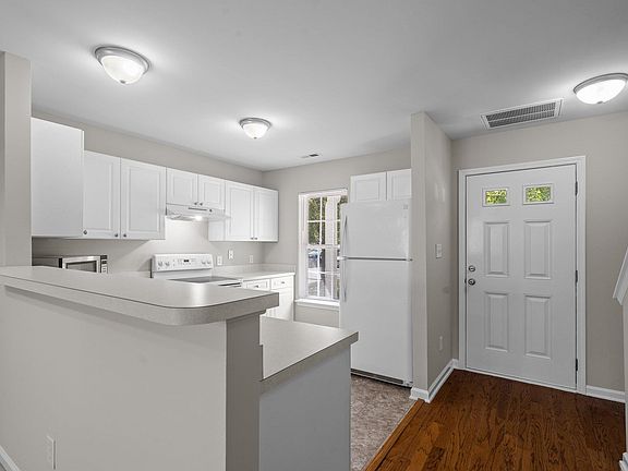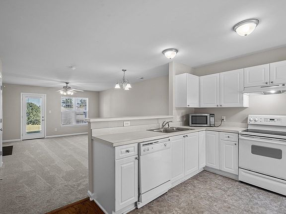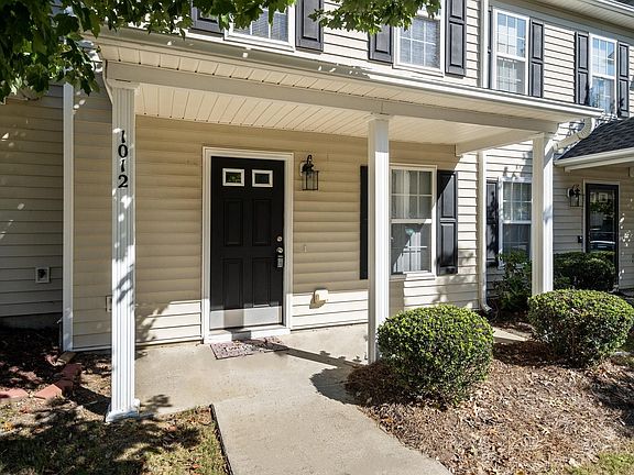 Adorable Mingo Creek townhome with open floor plan! Bright & spacious kitchen offering white raised panel cabinets with chrome door pulls, matching accent countertops, two satin nickel overhead lights illuminate the space. White appliances include an LG oven, LG countertop microwave, LG dishwasher & Kenmore refrigerator. The kitchen flows into the dining area & then on into the family room, both with new grey carpeting & painted white baseboards. A electric fireplace with slate surround and painted white mantel create a cozy & comfortable living area. A full glass door leads to the concrete patio with privacy fencing & storage shed. Powder room w/pedestal sink & foyer are adorned by pre-finished hardwood floors. Upstairs you'll find the master bedroom with a vaulted ceiling & walk-in closet and one other bedroom, both with their own en-suite baths. Excellent location just minutes to shopping, grocery, dining & all that Knightdale has to offer. Just a 12 minute drive to downtown Raleigh & easy access to RTP & so much more!