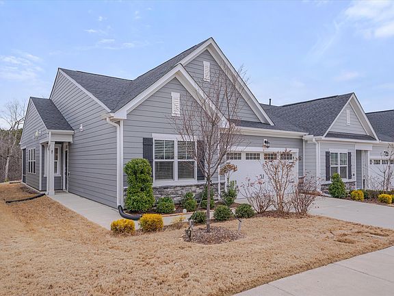 Welcome to Fendol Farms and the low-maintenance living this one-story, end-unit townhome affords its new owner. Built in 2022, this property comes with peace of mind with a newer roof, water heater, and appliances. Freshly painted inside, this townhome is ready for you to move right in. There are two bedrooms with a split bedroom plan for privacy. Luxury vinyl plank floors and crown molding flow throughout the home. The kitchen, dining, and living room are all open, spacious, and bright with lots of windows throughout. The kitchen has a center island, granite countertops, gas range, refrigerator, and pantry. The primary bedroom has triple windows overlooking wooded, private views, and the bathroom has a tile shower, double sinks, and a walk-in closet. Laundry room has a mud sink, lots of storage, and comes with the washer/dryer. Two-car garage with door opener and lots of shelving. Fendol Farms has a pool, pickleball, dog park, and community activities. There is a pocket park in front of the townhome and nobody behind it. Minutes to RDU, RTP, Duke, Brier Creek shopping, and much more.