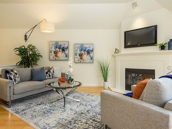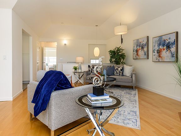 Amazing townhouse located in the desirable Bayfront Court. Formal entry separates the open living room from the downstairs bedrooms. Vaulted ceilings upstairs w/wood burning fireplace, hardwood floors and abundance of natural light giving a spacious feel. Meticulous owners have remodeled the kitchen w/new sleek cabinets, wine cooler, SS appliances and Jazz White marble counter. Bathrooms updated with new vanity and fixture. Mid-century modern lighting sets the comforting tone for entertaining guests. Separate dining w/breakfast bar for meals on the go. Spacious master bedroom has built in modular closets. Generous master bath w/his and her sinks. Bedrooms downstairs have their own access to a private patio. New paint throughout!! Quiet community just steps away from the pool/spa, lagoon view, Bay Trail and Sea Cloud Park. Attached 2 car garage w/extra storage and W/D in the unit. Home will be assigned to the new Foster City Elementary school on Shell Blvd when it opens.