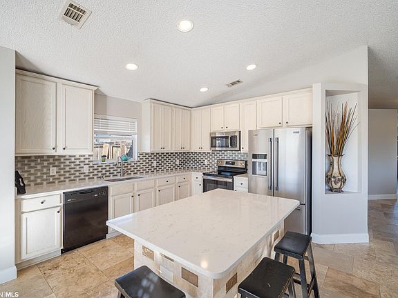 Welcome to this charming house in Foley!!! Location, location, location, conveniently located minutes from Main Street and Downtown Foley. This house is bursting with upgrades & turn-key ready for its new owner! As you walk into the home you are welcomed by the stunning TRAVERTINE FLOORS and the open foyer that invites you to the open Living Room and Kitchen area. This split plan, with 3 bedrooms and 2 bathrooms, has NO CARPET! The bedrooms have Luxury Vinyl Plank Floors & the bathrooms have been remodeled, and the entire house has been FRESHLY PAINTED. The kitchen boasts beautiful QUARTZ countertops with backsplash, and stained wood cabinets. An additional room, off the kitchen, is yours to envision as a Formal Dining Room, office or cozy den. As you exit to the backyard, you encounter a peaceful orchard, with an amazing view & the perfect spot to enjoy your morning coffee or evening beverage. NEW ROOF 2020. This home is centrally located, close to the soccer complex, restaurants, park, and all the amenities that Foley offers. USDA eligible! Buyer to verify all measurements and information deemed pertinent.