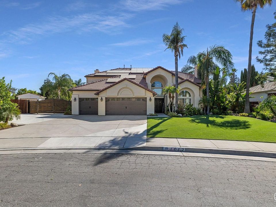 Welcome to the highly desirable community of Spring Meadow. This fabulous 2 story home has been updated thru out. Beautiful luxury vinyl plank flooring thru out most of home. Awesome open floor plan with 4 bedrooms plus game room, 2.75 baths. Spacious center island kitchen with granite counters, subway tile backsplash and stainless appliances. Soaring vaulted ceilings in formal living and dining rooms, beautiful stone fireplace in living room and blt in china hutch in formal dining room. Relax in the open great room overlooking covered patio and sparkling salt water pool with raised deck and shear descent waterfall. Retreat to your private primary suite with fireplace, dual vanities, huge shower and walk in closet. There are 3 bedrooms upstairs and 1 bedroom down stairs, game room could easily become additional bedroom if needed. Indoor laundry with storage cabinets, storage closet and laundry sink. Huge lot with RV parking and tons of grass area. 3 car garage and owned solar!