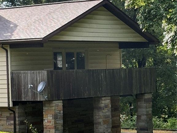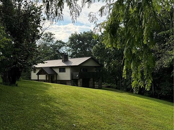 Private Country Setting Nearly 5 Acres, is predominantly surrounded by woods, offering serene environment. Residence has been freshly painted, newer carpeting on stairs, luxury vinyl wood planks throughout main living areas. Open floor plan includes a kitchen with ample storage generous counter space, and kitchen island ideal for quick meals. This space seamlessly opens to dining ,living rm which are highlighted by stunning stone wood-burning fireplace, providing warmth cooler days. Natural light floods home; open the French doors to enjoy your morning coffee on the covered deck relax plan your busy day. Master bdr boasts an ensuite bathroom, ample closet space. A touch of romance, French doors from master bedroom lead to another private, secluded, covered deck, where one can watch the sunset and star gaze . Additionally, there is wood burner in family rm, remains unfinished, allowing you to customize it to your personal taste. The French doors in this area also open to the backyard.