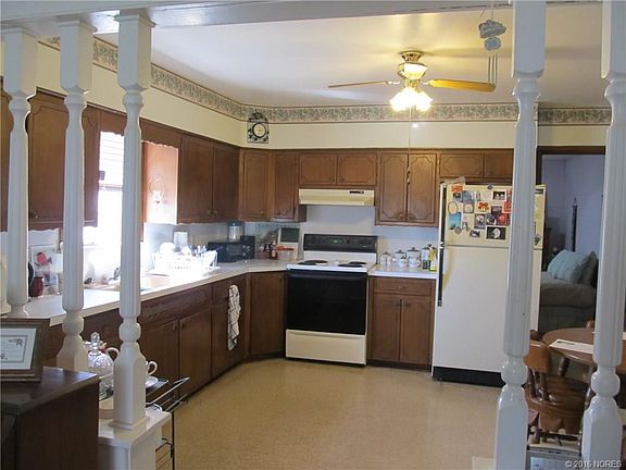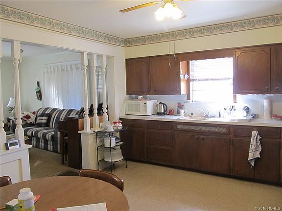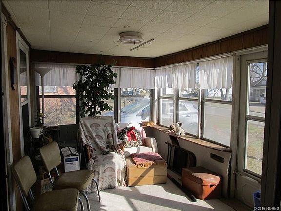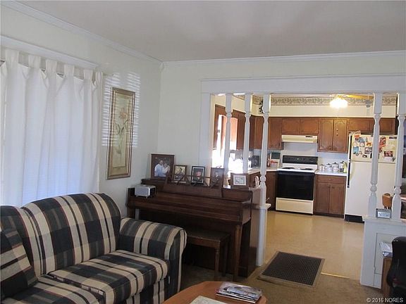 Pretty home sitting on a corner lot. 2 bed, formal dining, nice living area, large kitchen w/stove, refrigerator, & microwave, big mud room w/washer & dryer, carport, detached garage/shop, screened in porch, window air, floor furnace, priced to sell.