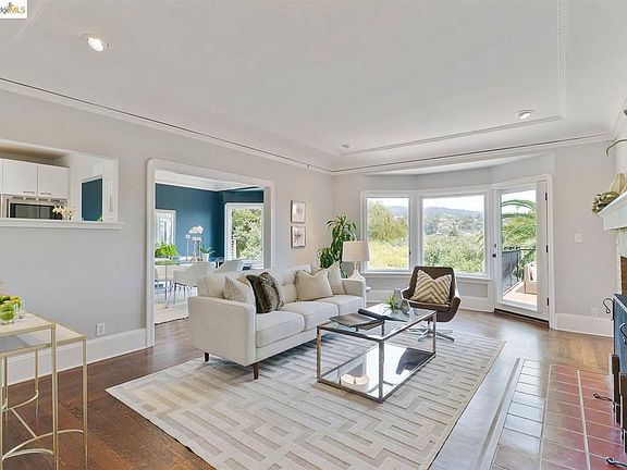 This 1925 Mediterranean-style gem has it all and more. A handsome street presence, an elegantly landscaped front yard with olive trees, flax, succulents and palms, and an expansive lot hint at the surprises inside. The inside to outside flow, sophisticated finishes and chef's kitchen make this an entertainer's dream: the perfect home to open up for cocktail parties, dinners and other events, both formal and casual. The living room is grand & nicely appointed with crown moldings, a coved ceiling and a brick fireplace. The windows frame the huge & lovely back yard, and a door easily accesses a large tiled deck that overlooks the garden. On the main level is a fantastic master suite with two rooms, a walk-in closet and a fabulously renovated bathroom. Huge French doors lead out to a tiled balcony with a panorama of hills and city views, as well as the lovely landscaping below. Downstairs has another large bedroom suite, a family room, a 3rd bedroom and access to the carport and yard.