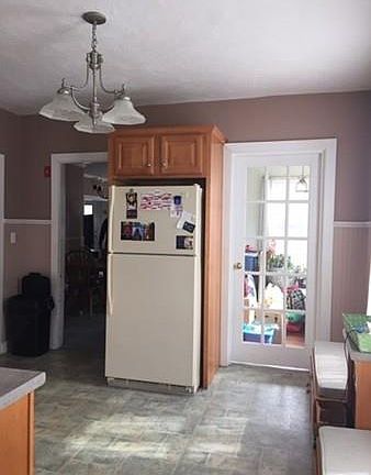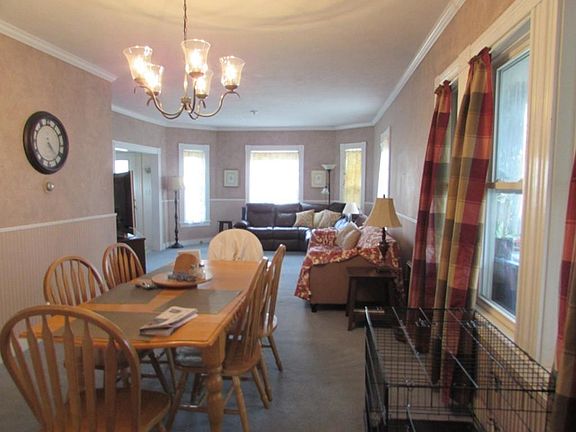 Spacious open floor plan in this very well maintained New England Colonial with 2 car detached garage. Featuring updated modern kitchen with large pantry, dining area open to living room, 1st level bedroom with den/office and 1/2 bath, 2nd level has 2 large bedrooms with new full bath. Many updates including fresh paint, windows, roof and vinyl siding. Nice private backyard, very convenient location.