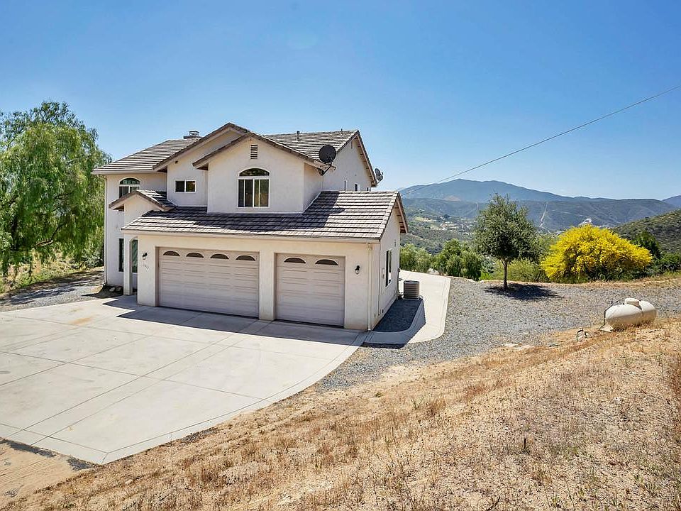 Relax to the sounds of nature, this beautiful two story Dehesa Valley home is nestled on 4 ACRES at the top of the hill with sweeping mountain views & stunning sunsets. Just waiting for the perfect owner to enjoy all this home has to offer. Built in 2004 this 2 bedroom (optional 3-4 bedroom) home plus bonus room/loft has plenty of great features including a gorgeous updated kitchen & great room w 20' ceiling, huge master bathroom w/walk in closet, open floor plan, and a 3 car garage. Spectacular views from living room, kitchen, and master bedroom. Master bedroom has a huge deck to enjoy morning coffee and evening sunsets. No need for city water this home comes complete with a Well and a 5,000 gallon tank, recently updated. Newley installed reverse osmosis drinking water system in kitchen & new whole house water filtration system. Home is on septic & has been maintained regularly. Gas is Propane, 250 gallon tank. Home has potential 4th bedroom by easily converting upstairs loft, see floor plan rendering. RV Parking and plenty of space for granny flat or ADU! Newley installed reverse osmosis drinking water system in kitchen & new whole house water filtration system. Home is on septic & has been maintained regularly. Gas is Propane, 250 gallon tank. Home has potential 4th bedroom by easily converting upstairs loft, see floor plan rendering. RV Parking and plenty of space for granny flat or ADU! Equipment: Dryer,Garage Door Opener, Range/Oven, Washer, Water Filtration Sewer: S