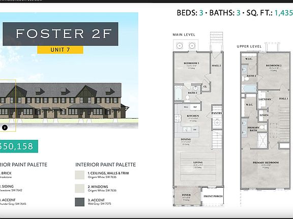 The Foster 2F - this 3 bedroom home has everything you are looking for with a secondary bedroom on the main level, spacious kitchen and living areas. The main level features 10ft ceilings, trey ceiling with modern beams, accent walls, and all of the best designer finishes!!! Upstairs you'll find your primary suite with large full bath. Guests will love the upstairs secondary bedroom with attached private bathroom. This corner unit is something special, check out the design finishes in the pictures!