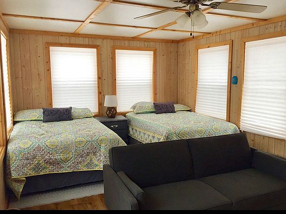 2003 Dakota Cabin. Main cabin has master bedroom, full bath, kitchen and sunroom. Large, attached porch. 20x24 guest cabin. 8x12 shed attached to porch, great for entertaining! 8x12 bunkhouse. 5x8 Rubbermaid shed. Large wood carport with attached 10x12 shed. Located at Woodland Resort. Lot rent, electricity and water paid to Woodland Resort annually.