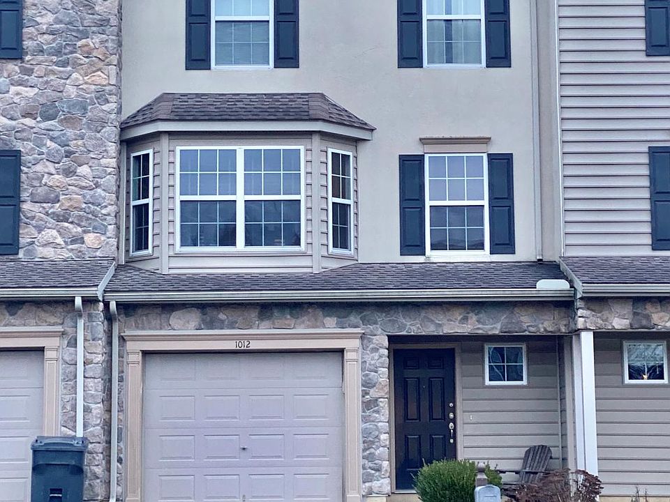 Huge bright townhome with so much space! This home has three floors of living space plus a 1 car garage. You enter into the main level foyer and this leads either upstairs or to the main level family room. Huge family room with a sliding glass door and window in the rear. There is also a convenient powder room on this level. On the next level you will be blown away by the amount of space. Huge eat-in kitchen with island, tile backsplash and lots of work space and cabinet space. All appliances remain. There is a large living room on this level with plenty of natural light and a 2nd powder room. The uppermost floor has a huge owner's suite with en suite bath. Plenty of space that includes 2 closets. Two more bedrooms and a hall bath plus a conveniently located laundry room on this level. The property has a deck and a lower level patio for plenty of outdoor enjoyment. It includes upgraded central air and the plumbing is PEX. In my opinion it has very reasonable taxes as well as a reasonable HOA fee ($100/mth) which includes trash and common area maintenance. This home is not in perfect condition and will require some updating but overall will make a tremendous home for the next owner.