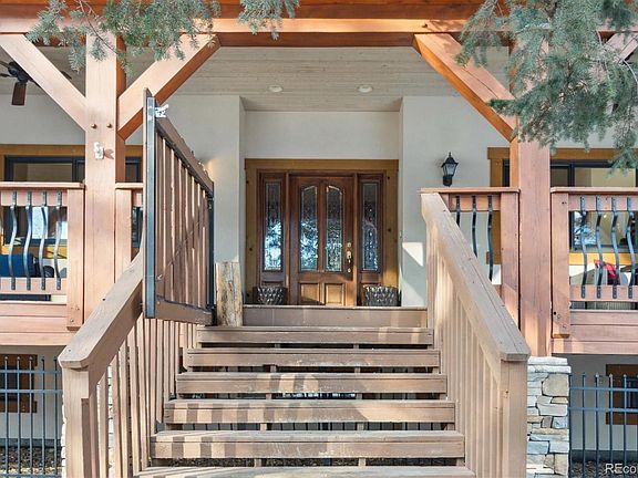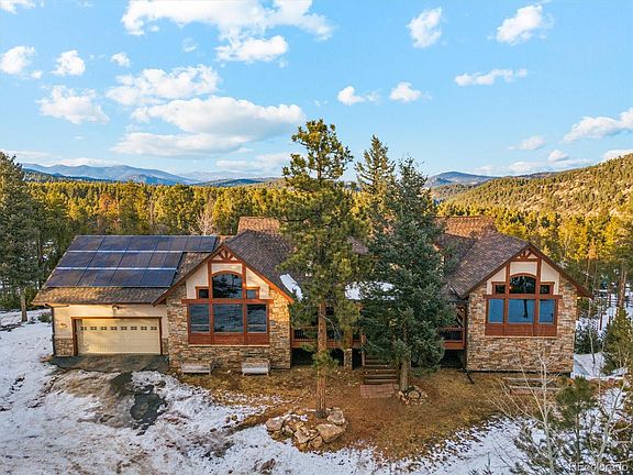This true ranch-style home is situated on 2 acres of flat/usable land. The property boasts a spacious paved circular, south-facing driveway (snow quickly melts off), with plenty of trailer parking. Attached oversized 2-car garage, and an RV garage discreetly tucked at the back of the house. Experience the serenity of mountain living while being just minutes from HWY 285 the conveniences of Aspen Park and Flying J Ranch Open Space, which allows for neighborhood access to over 460 acres of land for horse, bike, and walking trails. Five minutes to grocery stores and schools that are consistently ranked the best in the state. Main level includes a master en-suite, office, laundry & 2 BRs. Gourmet/entertainer’s kitchen w/huge island, slab granite, 2 sinks, 2 new ovens, 6-burner gas cooktop, wine cooler & S/S appl. Open concept great room w/vaulted Aspen wood clad ceiling & gas fireplace is a wonderful space to curl up & watch a movie. Extremely efficient w/in-floor radiant heat, solar panels, 2 gas fireplaces, & pellet stove. Lower has bedroom, ¾ bath, workout area/office space, plus a huge family rm & wet bar. Generator powers all critical systems, including water/heat and switches over automatically. Owned solar panels that sell back to the grid. Minimal electric bills in summer. New barn (36’ x 48’) built in 2017 sided with rough cut Colorado Pine with 100 amp electrical service and heated automatic water for livestock. Well is permitted as domestic, which is very rare in the mountains (includes animal watering use). The well performance is strong at 7 gallons per minute and the water quality is some of the best you’ve tasted. Brand new carpet 2025, newer fence, and roof in 2024 class 4 shingles and comes with a warranty. Large shop/RV parking insulated and ready to install natural gas heater in addition to the heated two car garage. CenturyLink DSL Internet is 45 Mb down 5 Mb up with very low latency to work remotely and stream multiple TVs. WELCOME HOME!