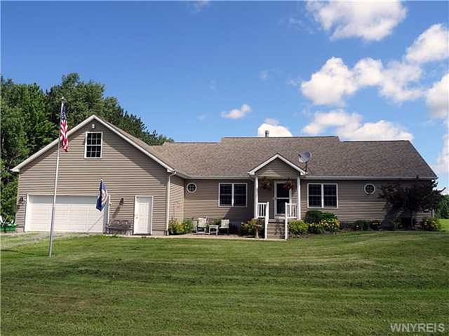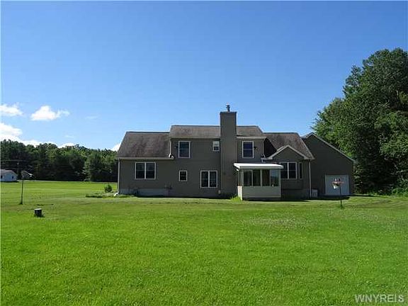 Built in 2005'. 15+ acres. Deep lot & wooded. 3 bedrooms 2.5 baths. Custom light oak kitchen with ceramic tiled floor. Family rm w/sliding doors to enclosed patio. Sunken family, formal living room & separate dining room. 1st floor master bedroom with walk in closets. 2 bedrooms & full bath upstairs. 1st floor laundry. Huge attached garage. Additional detached garage and shed. Land goes back over 5000 ft deep. Lots of trees, timber....Very pretty setting!